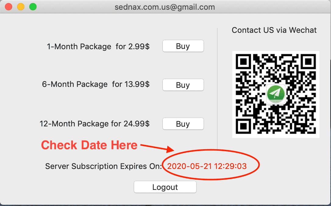 Step 4: Open ShadowsocksX,click paper plane icon on top status bar, choose menu User Login. Login with your account, if you haven't registered an account, click button Sign Up to create one.