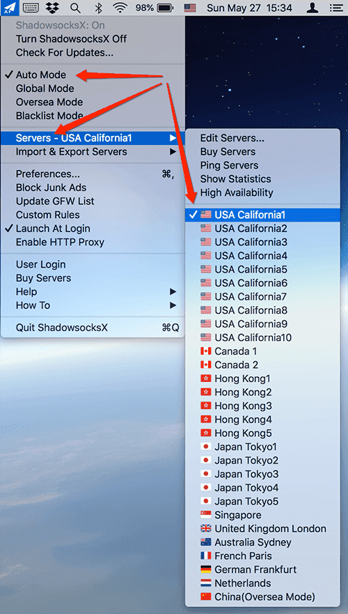Step 6: Open safari or chrome and you are good to go. If it fails to connect, change to another server and try again. If Safari works fine, but Chrome fails to connect, Click HereStep 7: If you are using Firefox, please setup Firefox Proxy first .