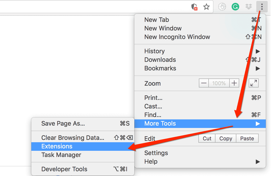 If you do have issues with Chrome, please use Safari to test first. Then open Chrome, choose from menu More Tools->Extensions, and the find out the extensions that might stop ShadowsocksX from working correctly, disable or delete those extensions and then try again.Those extensions include but not limited to: Unblock Youku, Proxy Extensions, VPN Extensions
