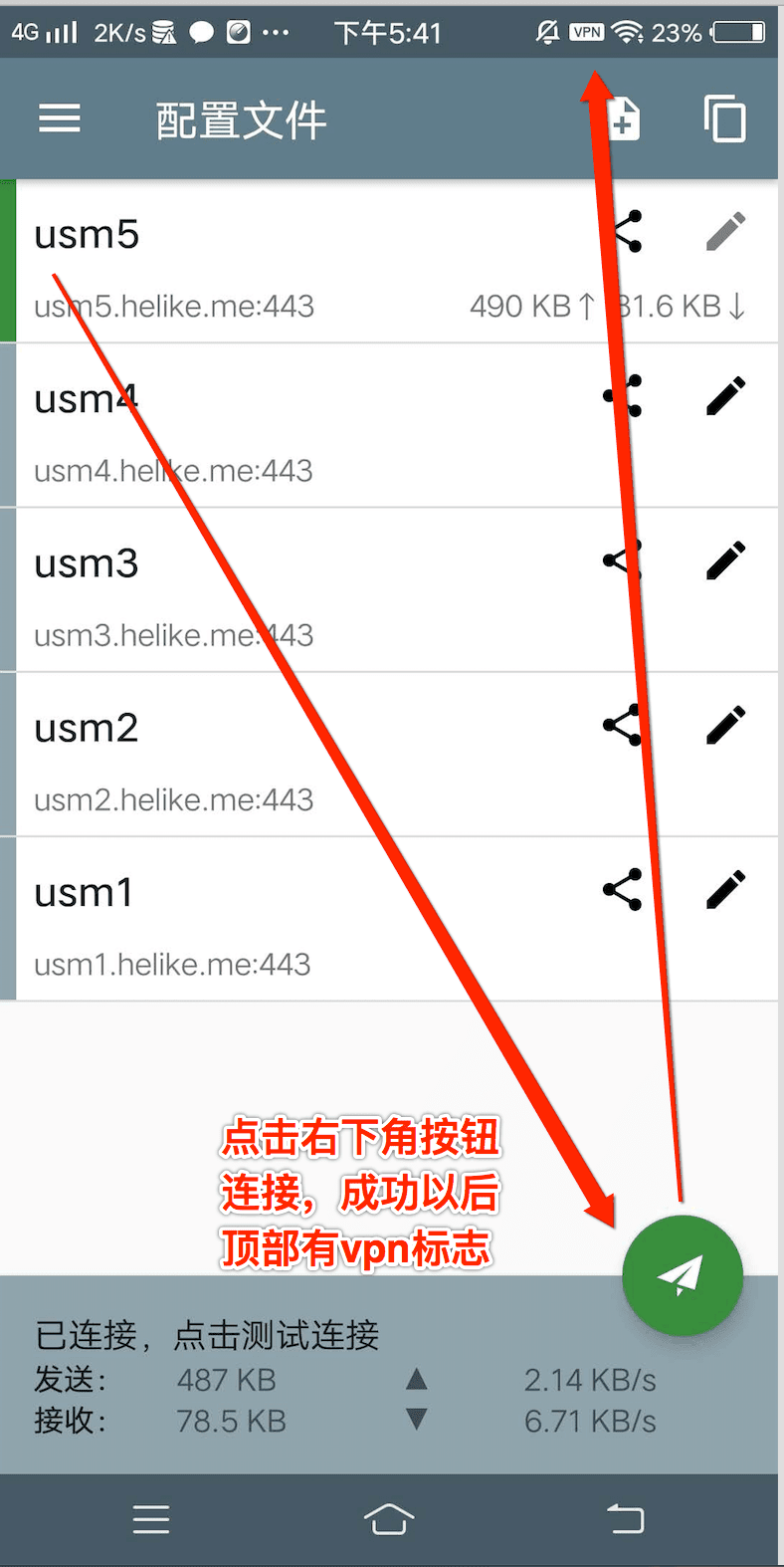 Step 3: Choose a server and tap round button to connect. If the device connects successfully, there would be an vpn icon on top, and the connect button is now in green color, if you can connect google.com, it means you are now successfully connected to the wild world, enjoy it.